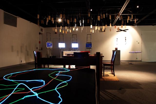 This show is about the changes that can take place in a traditional artist’s mind when they are introduced to new creative possibilities made possible by modern open-source hardware. The pieces in the show all exist in various parts of the ‘maker’ spectrum, from works that are largely contemplative to works that exhibit a high degree of engineering mentality. Altogether, the show represents a new type of ‘artist in residence,’ one who does not fully subscribe to the art world, yet does not fully participate in the engineering world. In effect, a Maker.