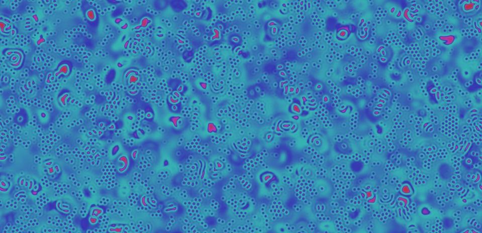 When run at large scales and high speeds, reaction-diffusion systems can produce an amazing variety of dynamic, mesmerizing patterns and behaviors. In the time since Turing published his original paper on the topic, reaction-diffusion has been studied extensively by researchers in biology, chemistry, physics, computer science, and other fields. Today it has become accepted as a plausible (some say proven) explanation for the formation of patterns such as zebrafish pigmentation, hair follicle spacing, the Belousov-Zhabotinsky (BZ) chemical reaction, certain types of coral, zebra and tiger stripes, and more.
