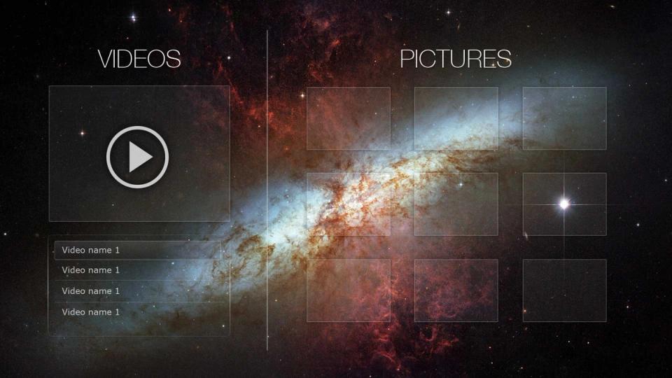 • Pictures + Videos: photo gallery and custom built media player for videos