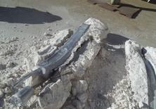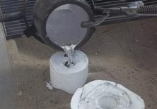 Once all of the metal had been poured all we had to do was wait for the molds to cool down enough to work with, which was about a day for most of us. Once cool enough to handle, I was able to take my mold to the open patio behind the studio and use a combination of hammers, chisels and wire cutters to break apart the mold and cut through the embedded chicken wire.