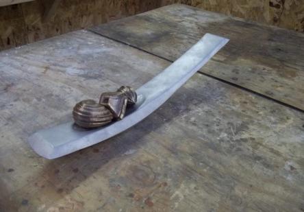 Based on the advice of the university’s sculpture professor Chad Fonfara, I attached large pieces of wax every few inches along the piece, aligning the entire thing vertically. This clever design allowed for metal to fill in the model very evenly, yet very quickly, while essentially pushing air upwards through the unfilled channels during the pour.