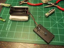 Players wear wristbands with battery-powered IR LEDs attached, which are tracked in real-time by a custom openFrameworks app using a modified PS3Eye camera. The position of the IR LEDs is mapped from the camera's coordinate space to the game's after a manual calibration process, while the game is projected onto the tabletop surface from above.